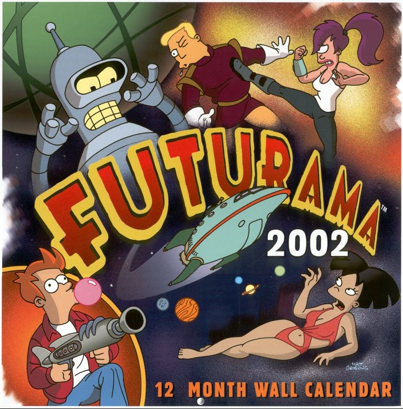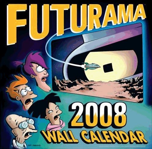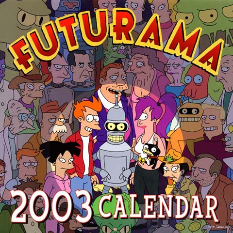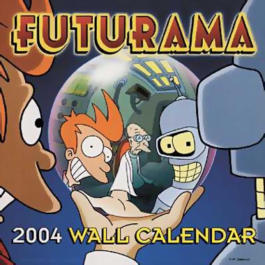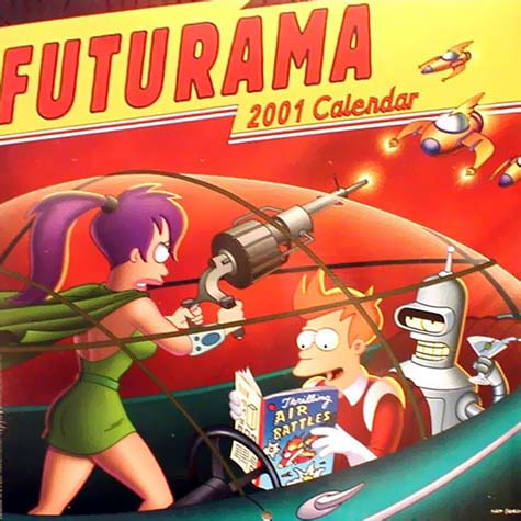 Infos : A l'image des calendriers Simpson, des calendriers Futurama existent également depuis l'An 2000. A l'instar de tous les calendriers traditionnelles, toutes les fêtes sont répertoriées mais aussi l'anniversaire de certaines célébrités. De plus une image délirante et exclusive de Futurama est disponible pour chaque mois de l'année ! Ci-dessous vous pouvez retrouvez une brève liste des calendriers Futurama de 2000 à nos jours.